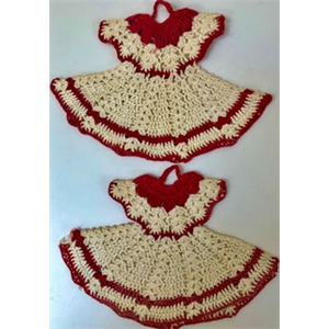 1940’s. Wonderful matching pair of cream and red crocheted dresses. Great to decorate your kitchen. Measures 6” High, 8” Wide. Excellent Condition.All Antiques and Collectibles are from a private col