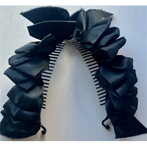 Pure elegance for that special occasion. Wavy layers of black nylon shape this wonderful accessory. Measures 5"W by 4"H by 3"D. All Antiques and Collectibles are from a private collection. FOR MO read more...